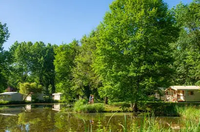 Le camping Aqua Viva s’étend sur 10 hectares verdoyants au bord d’un étang paisible.