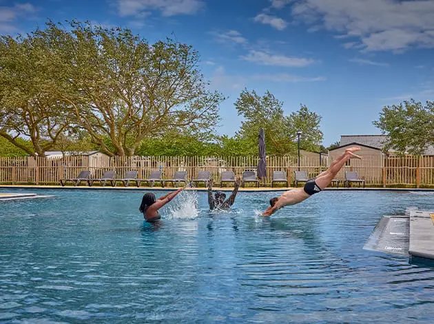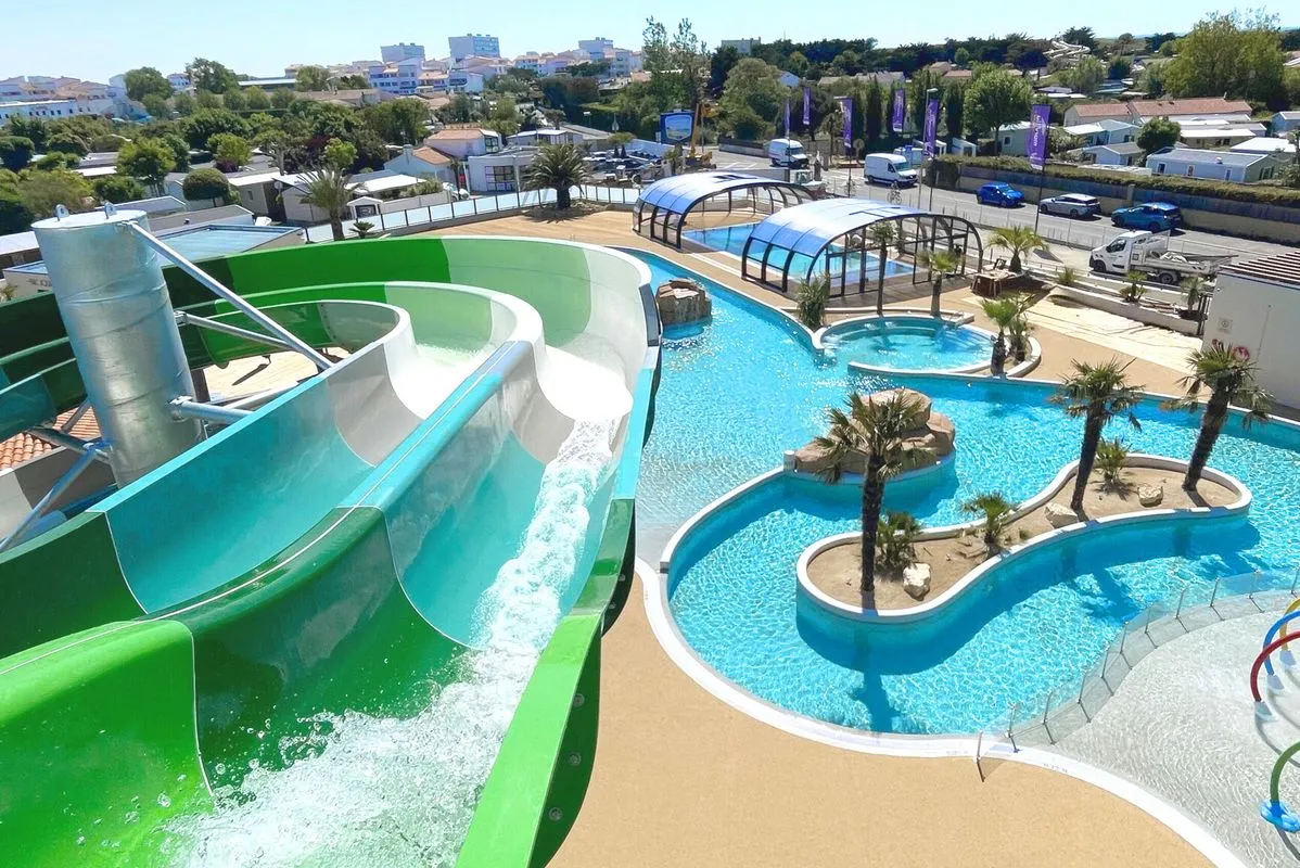 Le camping dispose d’un espace aquatique avec piscine chauffée, toboggans et pataugeoire, parfait pour toute la famille.